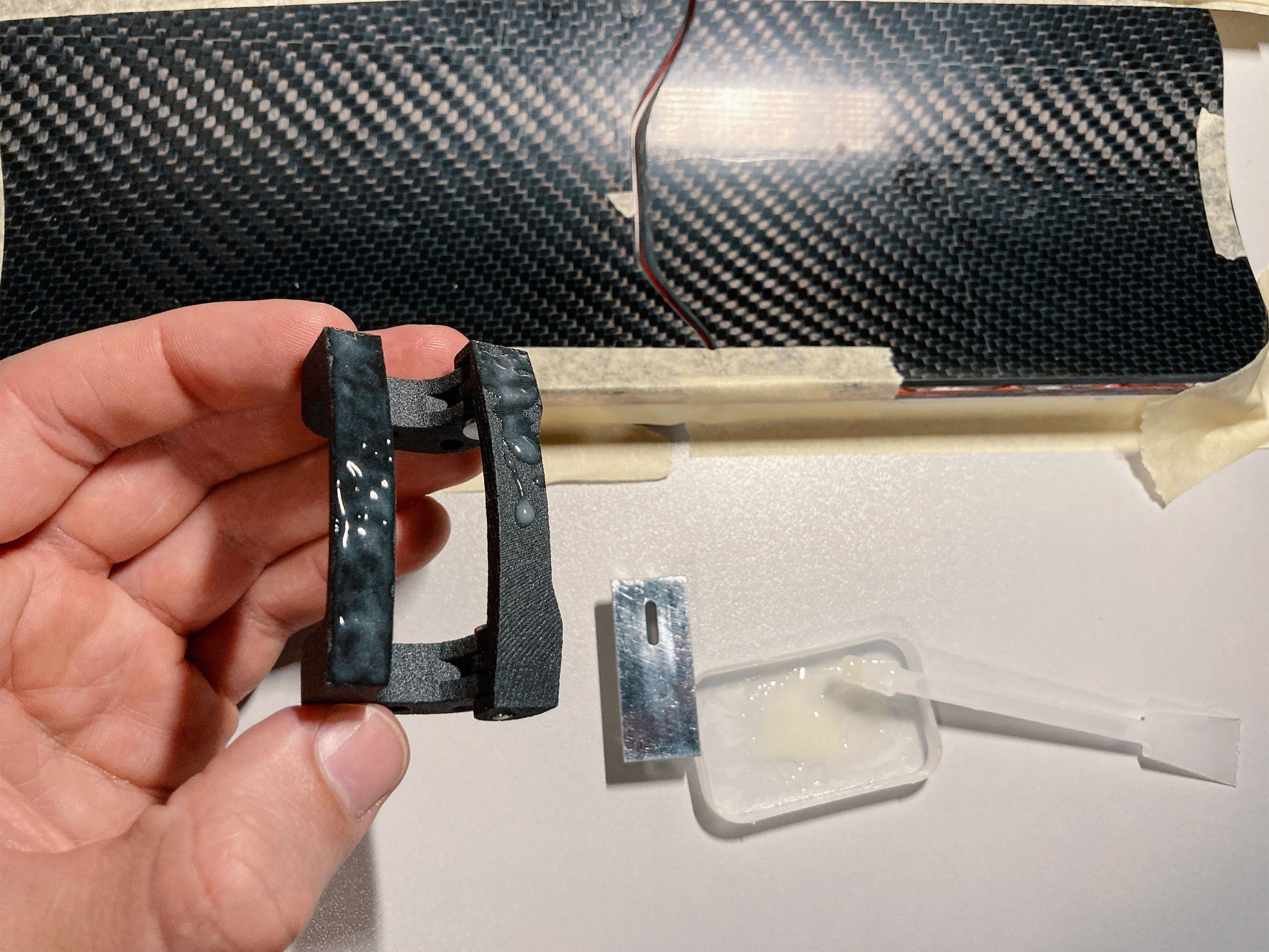 (Die  SLS-Teile wurden mit dem Lukendeckel der Rakete verklebt und verschraubt.Bildquelle: ARIS PICCARD)