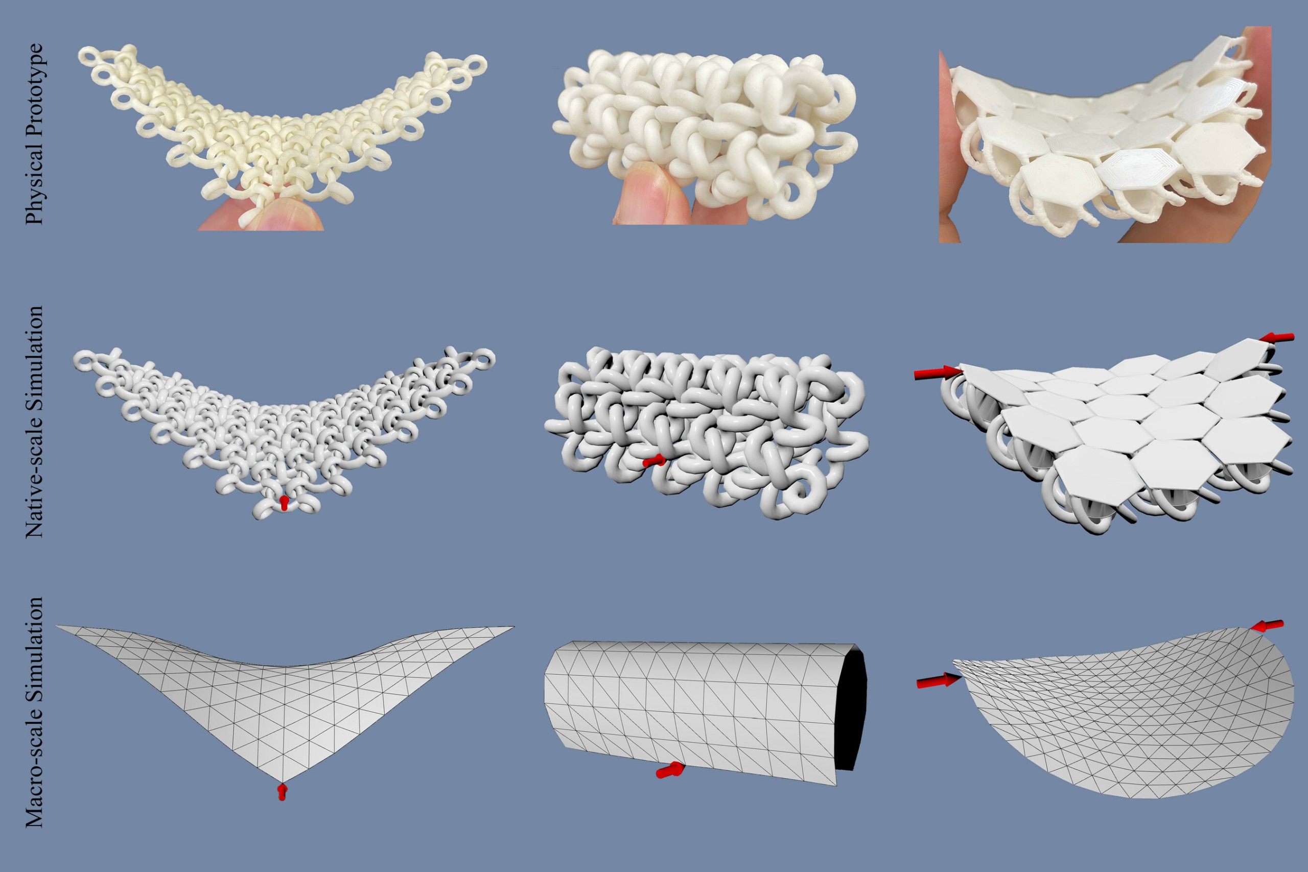 Die Forschenden haben eine Methode zur rechnerischen Modellierung, mechanischen Charakterisierung und Simulation dieser 3D-gedruckten Kettenhemden aus quasi-steifen, ineinander greifenden Elementen (die Verbindung von Ringen oder Gliedern in Kettenhemden-Materialien) entwickelt.