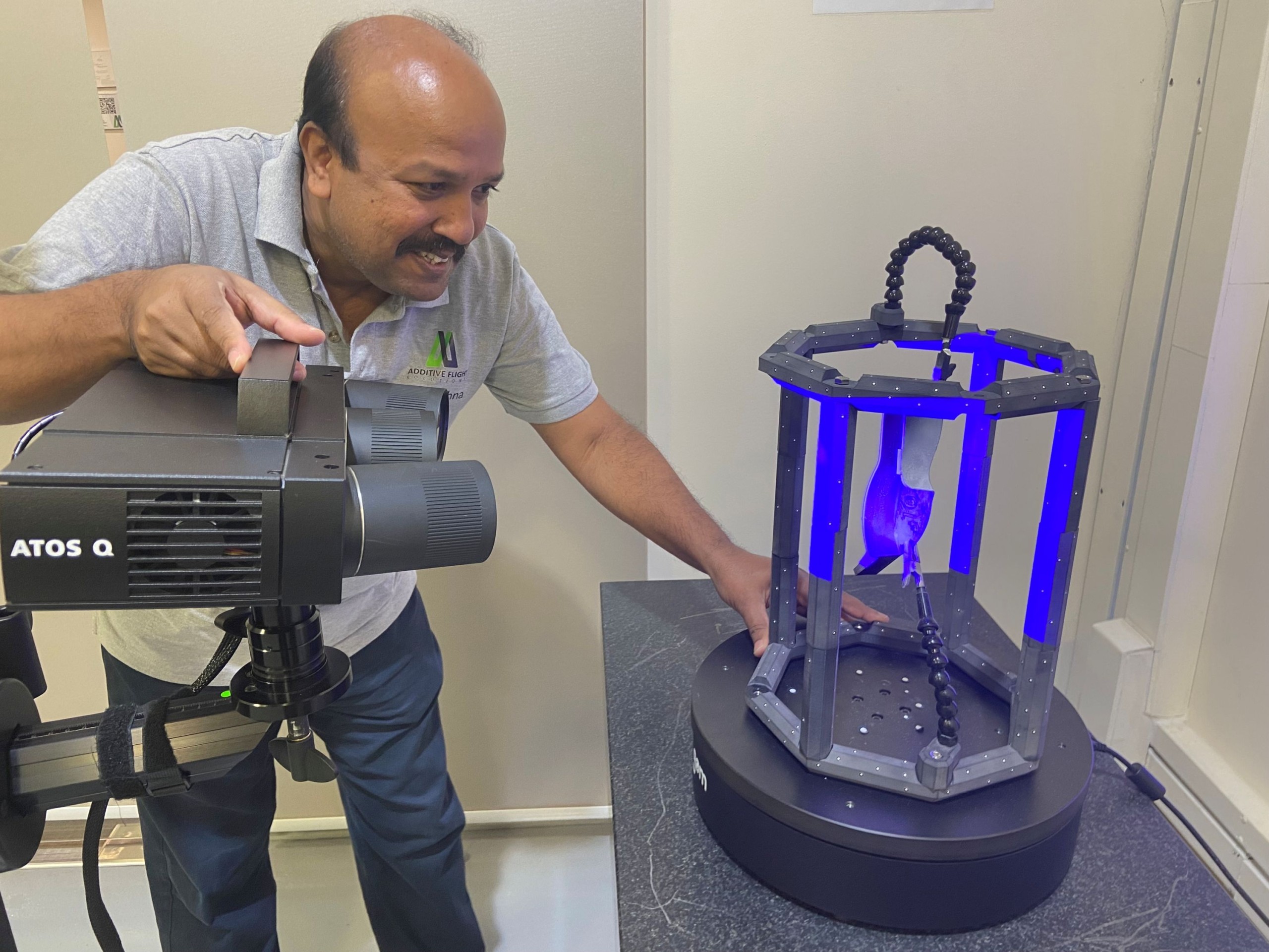 Um die erforderlichen Maße des Türgriff-Mode-Covers zu ermitteln, wird der zu bedeckende Verriegelungshebel direkt im Flugzeug gescannt.  Die Herausforderung: Es handelt sich um einen eloxierten silberfarbenen Griff. Die leicht reflektierende Oberfläche ist für den Scanner schwer zu erfassen. AFS besprüht den Griff daher vorab mit einem Scanningspray, um die Oberfläche zu mattieren und damit für den Scanner sichtbar zu machen. Verwendet wird das Scanningspray von AESUB. Es lässt sich einfach und schnell auftragen. Innerhalb weniger Sekunden entsteht eine feine, homogene Schicht auf der Oberfläche. Das Teil kann sofort gescannt werden. Ein weiterer wichtiger Aspekt für den Einsatz im Flugzeugt ist, dass die aufgetragene Schicht bereits nach kurzer Zeit von allein verdunstet. Somit müssen weder der Griff noch Flugzeug-Innenraum gereinigt werden. „Da das AESUB-Spray so schnell verdunstet, können Scans im Flugzeuginnenraum während der Line-Maintenance erfolgen. Diese Zeit zur Wiederbereitstellung angekommener Flugzeuge kann mit AESUB optimal genutzt werden. Da es keine Pigmente enthält ist das Spray für Passagiere, Personal und Anwender ungefährlich.“, erklärt Stefan Röding, General Manager von Additive Flight Solutions, der das AESUB Spray für unterschiedliche Anwendungen einsetzt.